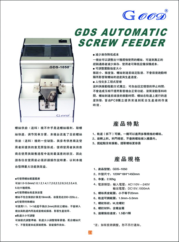 一機臺可以調(diào)整出11種規(guī)格使用的螺絲,可達到真正的經(jīng)銷桐廬減少庫存,使用者可降低設備保障成本