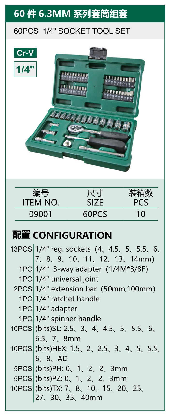 產(chǎn)品名稱: 60 件 6.3MM 系列套筒組套