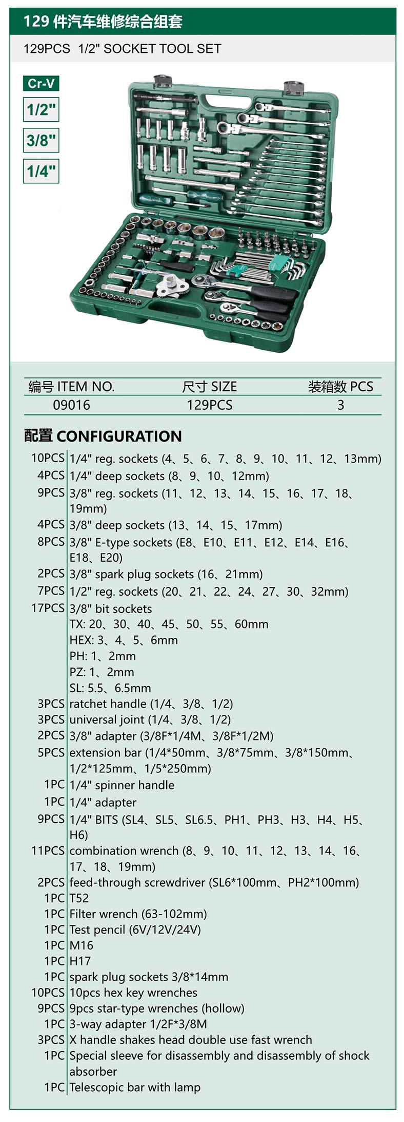 產(chǎn)品名稱: 129 件汽車維修綜合組套